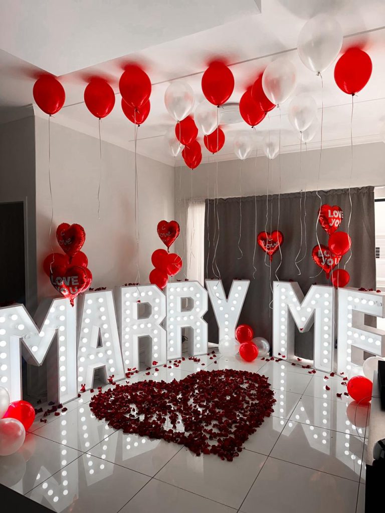 Juliet walked into the living room, her breath catching as she saw Happy Lights marquee letters glowing softly—“MARRY ME”. The warm light danced across the walls, filling the space with magic.